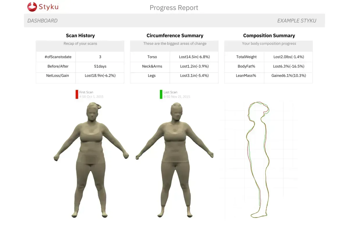 In only 35 seconds, we extract millions of measurements with 2mm accuracy and reconstruct your body in 3D. We utilize this for measuring your starting point and your progress.